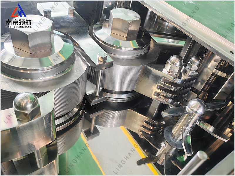 3、壓輪上下布置,消除了重力對物料的影響,保障了物料壓片前的均勻性;